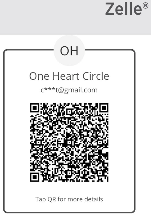 Please use Zelle, making payment to circleoneheart@gmail.com
